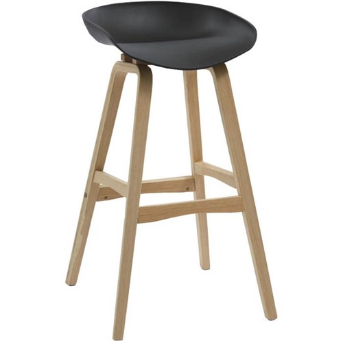 RAPIDLINE VIRGO BAR STOOL OAK COLOURED TIMBER FRAME WITH POLYPROPYLENE BLACK SHELL SEAT