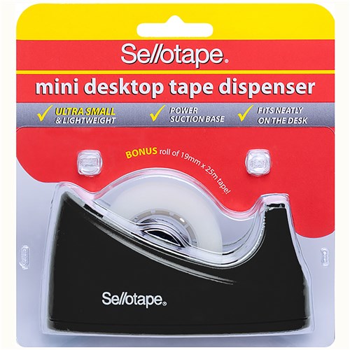 SELLOTAPE TAPE DISPENSER 19MMX25M MINI DESKTOP BLACK OR WHITE BONUS TAPE