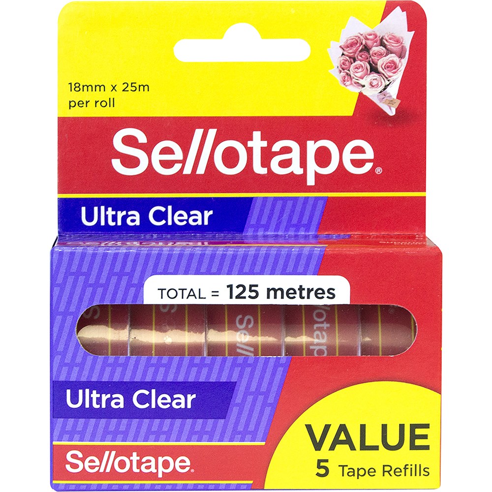 SELLOTAPE ULTRA CLEAR TAPE 18MM X 25M PACK OF 5