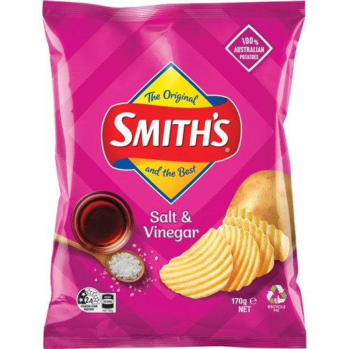 SMITHS CRINKLE CUT POTATO CHIPS SALT AND VINEGAR 170G