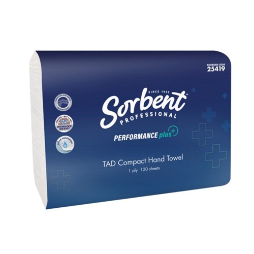 SORBENT PRO PERFORMANCE PLUS TAD COMPACT HAND TOWEL 1 PLY 120 SHEETS CARTON OF 20