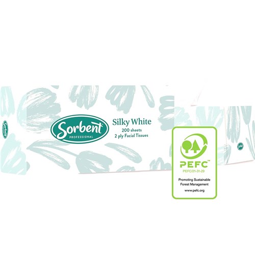 SORBENT PROFESSIONAL SILKY WHITE FACIAL TISSUE 2 PLY 200 SHEETS