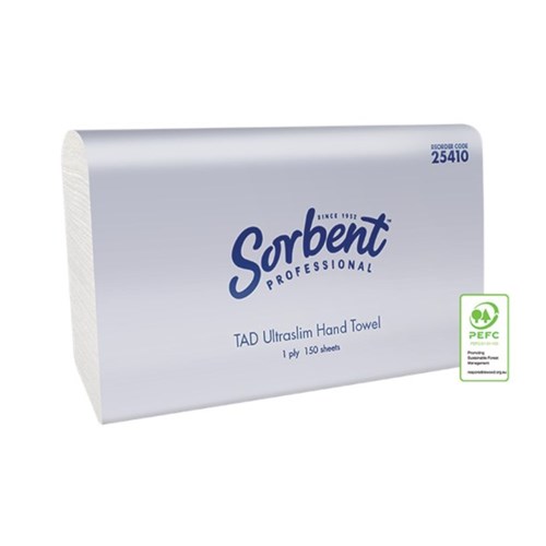 SORBENT PROFESSIONAL TAD ULTRASLIM HAND TOWEL 1 PLY 150 SHEETS CARTON OF 16