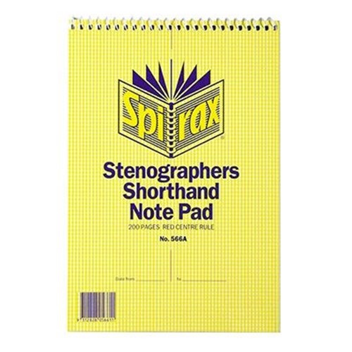 SPIRAX 566A STENOGRAPHERS SHORTHAND NOTEBOOK 225 X 152MM CENTRE RULE 200 PAGE TOP OPEN