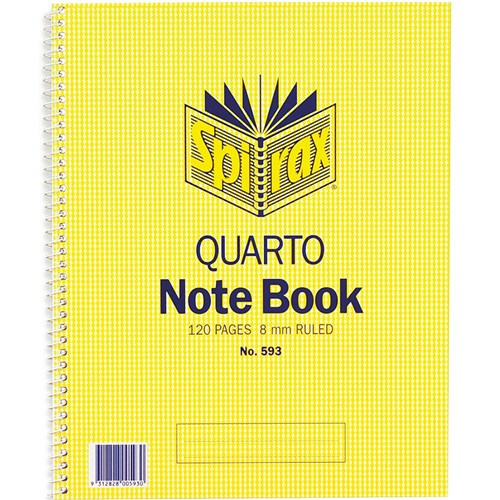 SPIRAX 593 QUARTO NOTEBOOK 250 X 200MM RULED 120 PAGE SIDE OPENING
