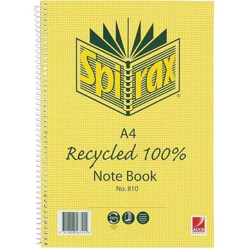 SPIRAX 810 RECYCLED 100% NOTEBOOK A4 RULED 120 PAGES SIDE OPENING