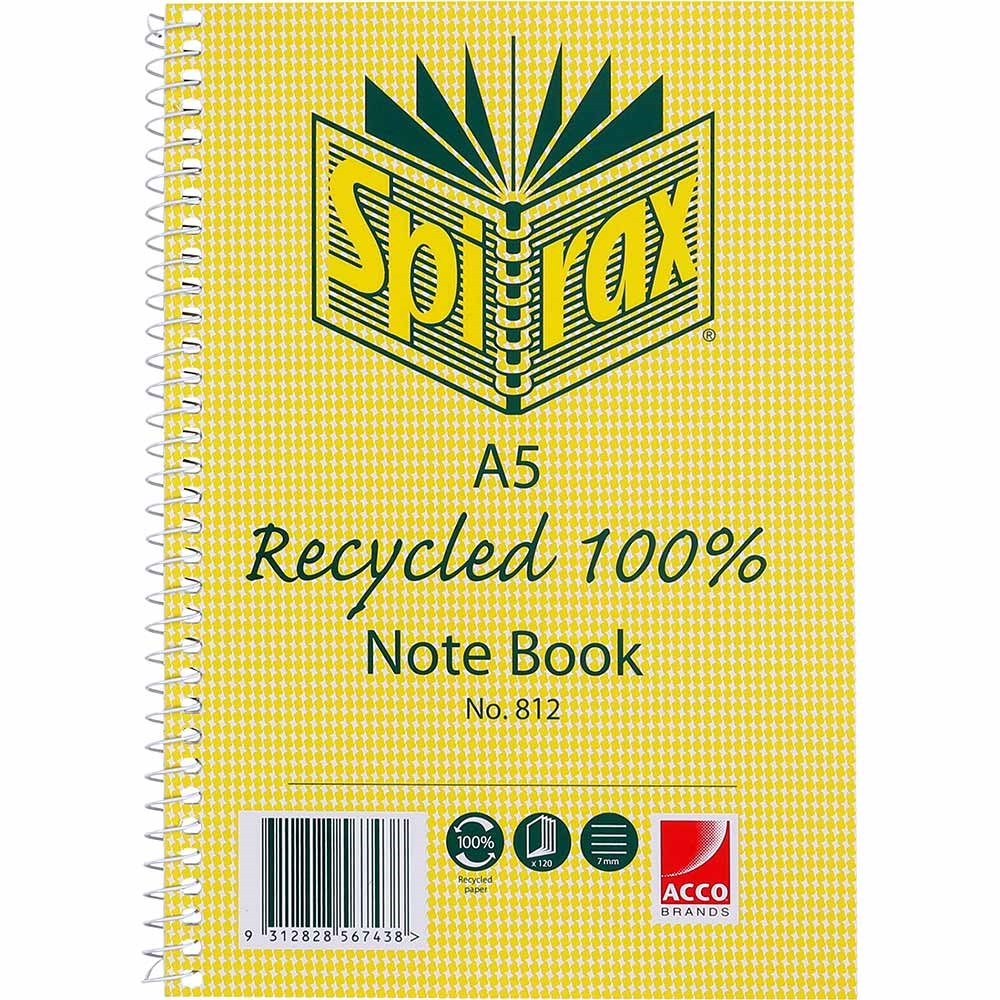SPIRAX 812 RECYCLED 100% NOTEBOOK A5 RULED 120 PAGES SIDE OPENING