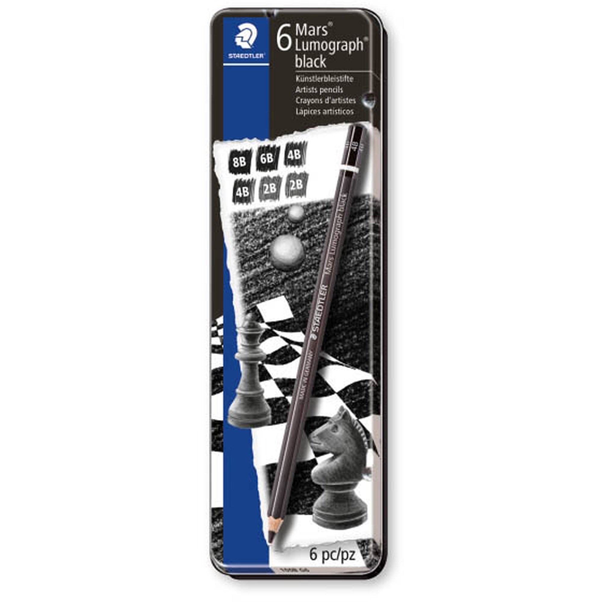 STAEDTLER 100 MARS LUMOGRAPH SKETCHING PENCILS ASSORTED DEGREES BLACK PACK OF 6