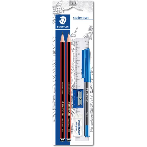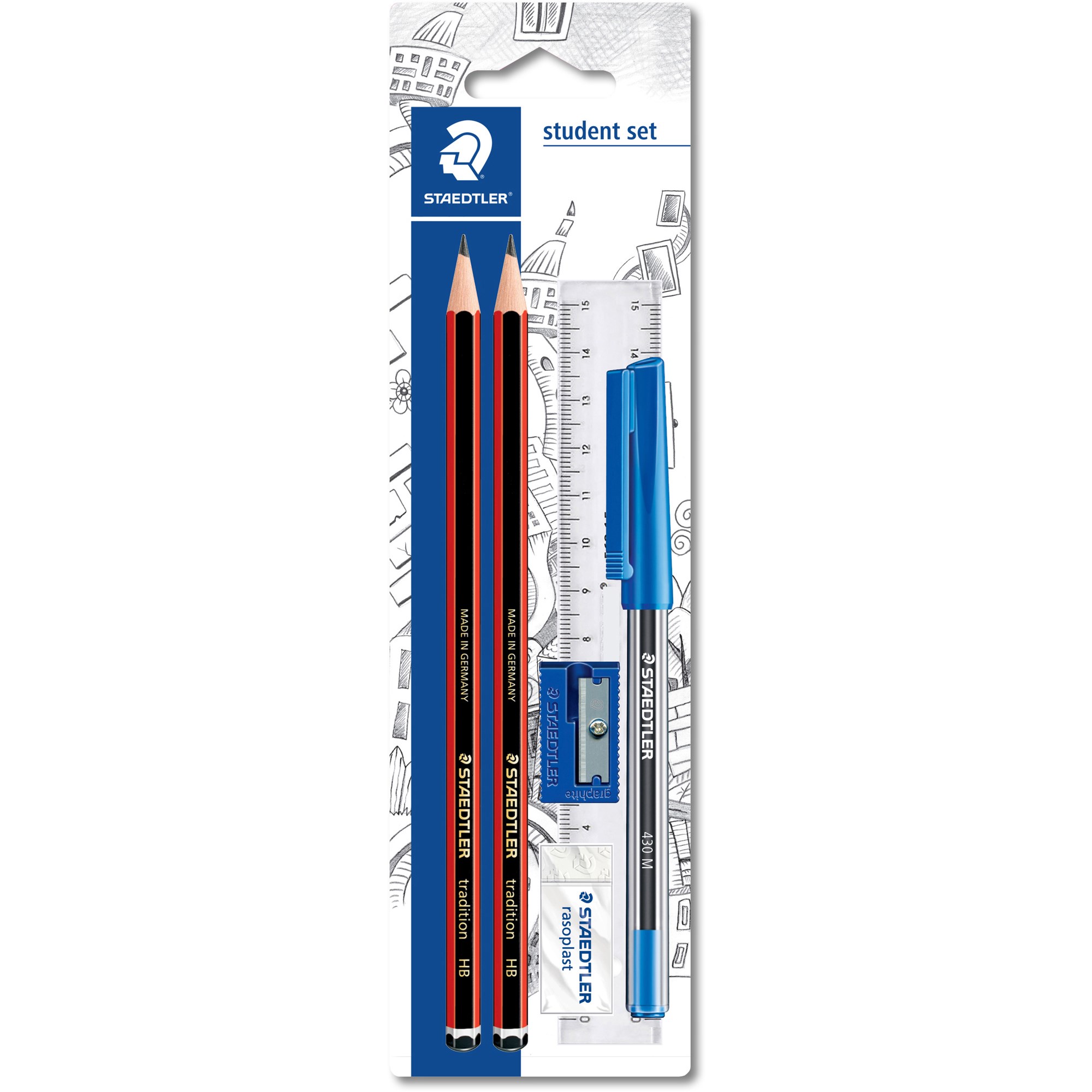STAEDTLER 110 TRADITION STUDENT SET 2 HB PENCILS, ERASER. PEN, RULER & SHARPENER