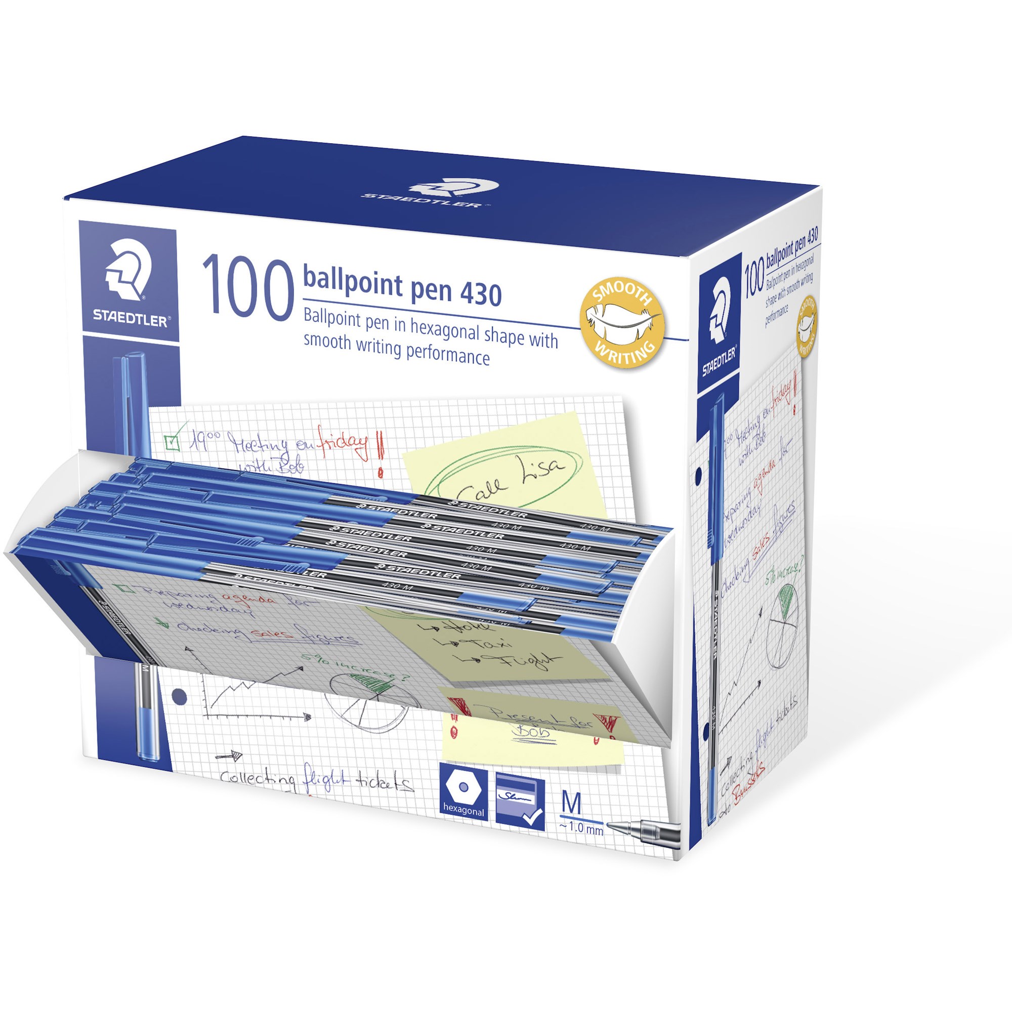 STAEDTLER 430 STICK BALLPOINT PENS MEDIUM 1MM BLUE BOX OF 100