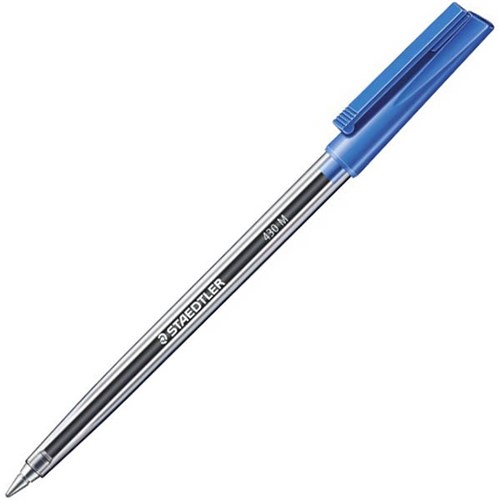 STAEDTLER 430 STICK BALLPOINT PENS MEDIUM 1MM BLUE CUP OF 50