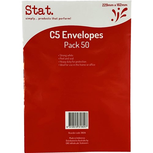 STAT PEEL AND SEAL ENVELOPE C5 HEAVY DUTY WHITE PACK OF 50