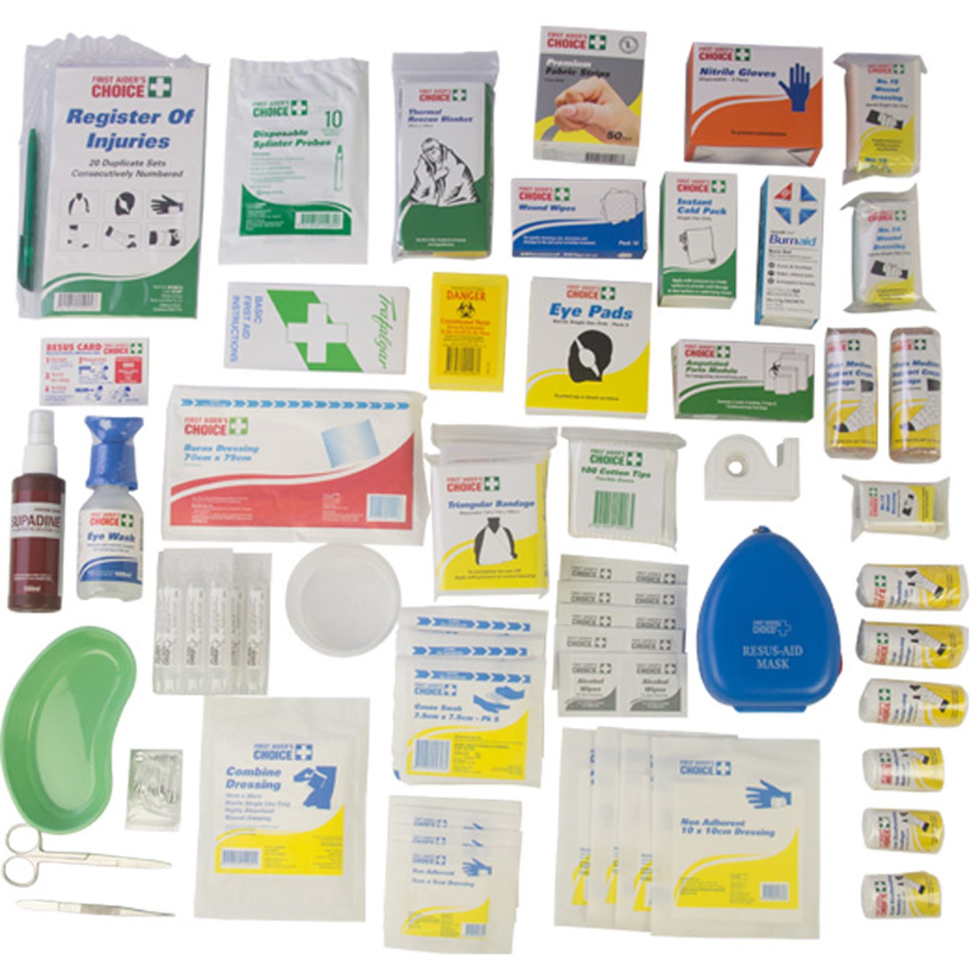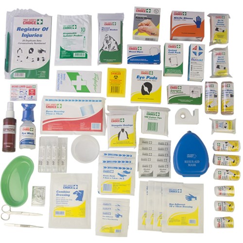 Refill will stock up your first aid kit at home or in the workplace. Contains a range of comprehensive contents suitable for cuts, burns, bruising, strains, sprains and minor wound care. Content is colour coded, which allows users to easily identify products to use in an emergency. This kit assists with the workplace rating of 'high risk' under the Safe Work Australia First Aid Code of Practice. Health Warning: Always read the label and follow the directions for use. General Information Intended Purpose: A collection of equipment for the initial treatment of minor to moderate injuries.
