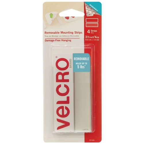 VELCRO BRAND REMOVABLE STRIPS 44 X 19MM WHITE PACK OF 4