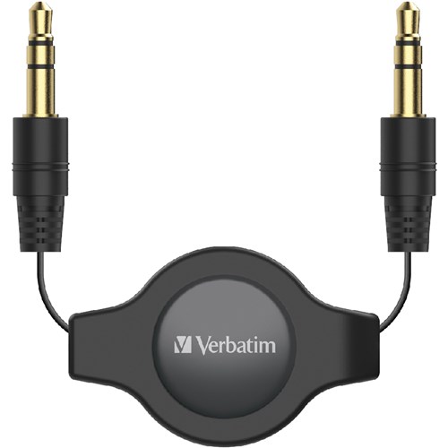 VERBATIM 3.5MM AUXILIARY AUDIO CABLE RETRACTABLE 75CM BLACK