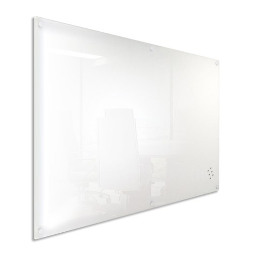 A contemporary alternative to traditional white boards highlighted by the translucency and elegance of premium glass. Toughened safety glass, non-porous surface will not ghost or stain and works with standard dry-erase markers. Tempered glass is borderless to create clean lines, uncluttered and ultra modern appearance. Polished edge and 6mm rounded corners. 12mm holes for fixing are space 35mm from edges. Includes clear acrylic pen tray and 5 super strong glass board magnets. 50 Year warranty on erasing surface.