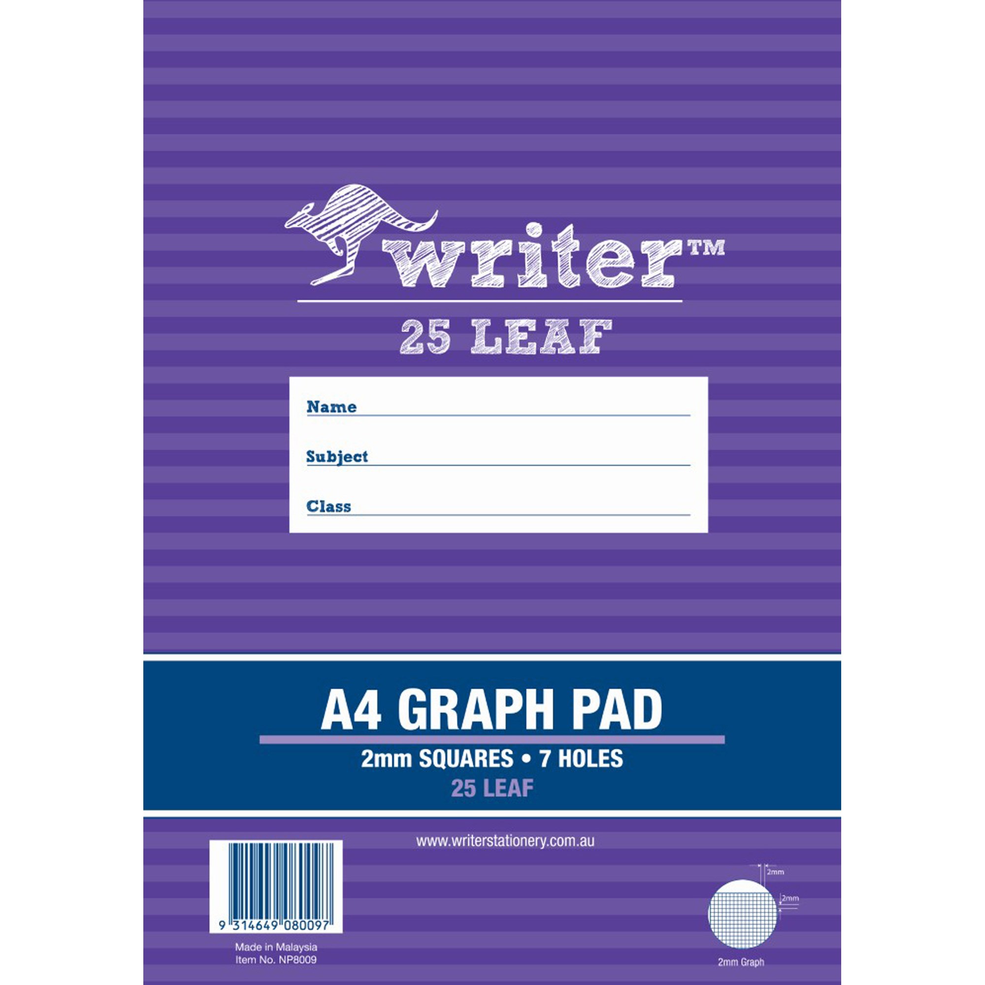 WRITER GRAPH PAD A4 2MM 25 SHEETS