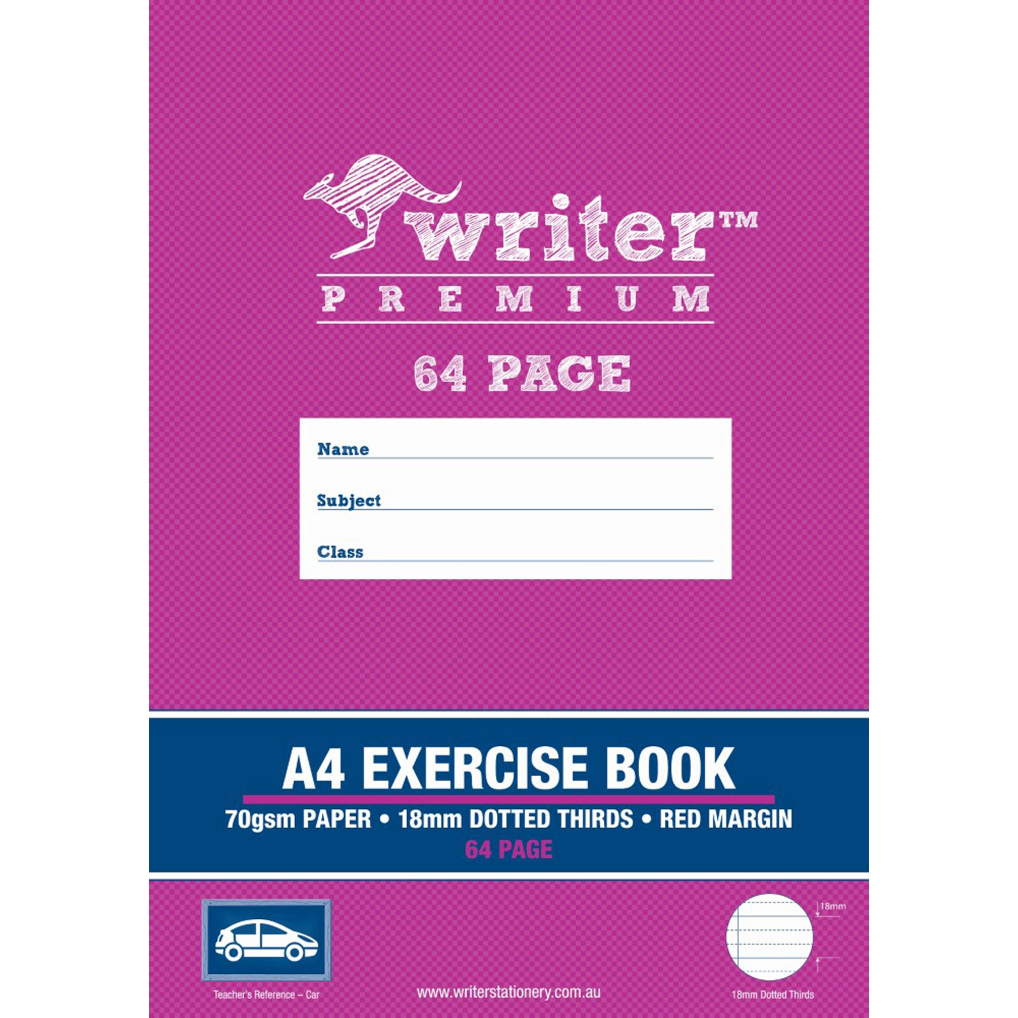 WRITER PREMIUM EXERCISE BOOK A4 18MM DOTTED THIRDS 64 PAGES CAR