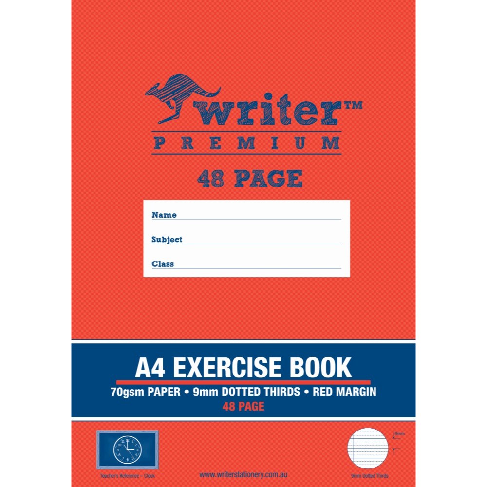 WRITER PREMIUM EXERCISE BOOK A4 48 PAGE 9MM DOTTED THIRDS RED MARGIN CLOCK