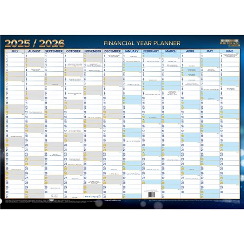 WRITERAZE FINANCIAL YEAR WALL PLANNER 500 X 700MM BLUE